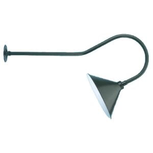 Using an angled hook mounting arm, the Cone Spot Gooseneck Fixture offers a unique lighting style compared to other gooseneck sign lights. The spotlight shade spreads light to cover all areas of the desired location. Illuminate advertising, wall murals, and other features with the bright spotlight of the Cone Spot Gooseneck Fixture. Bulb not included.