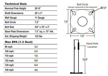 Round Straight Steel Galvanized Light Poles 20′ x 3" x 11G